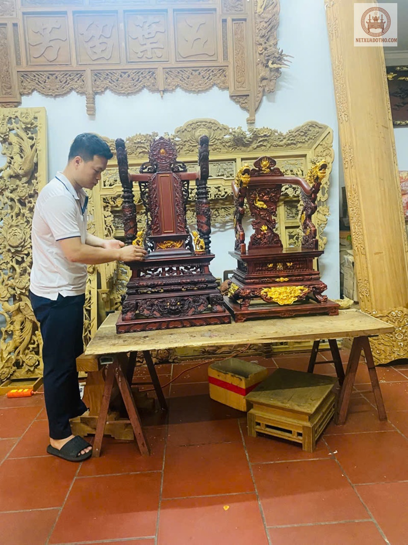 - Sự đồng bộ:Chất liệu và màu sắc của ngai nên hài hòa với các vật phẩm khác như bát hương, lọ hoa để tạo không gian thờ cúng trang nghiêm, đồng nhất.